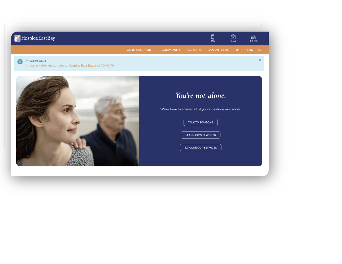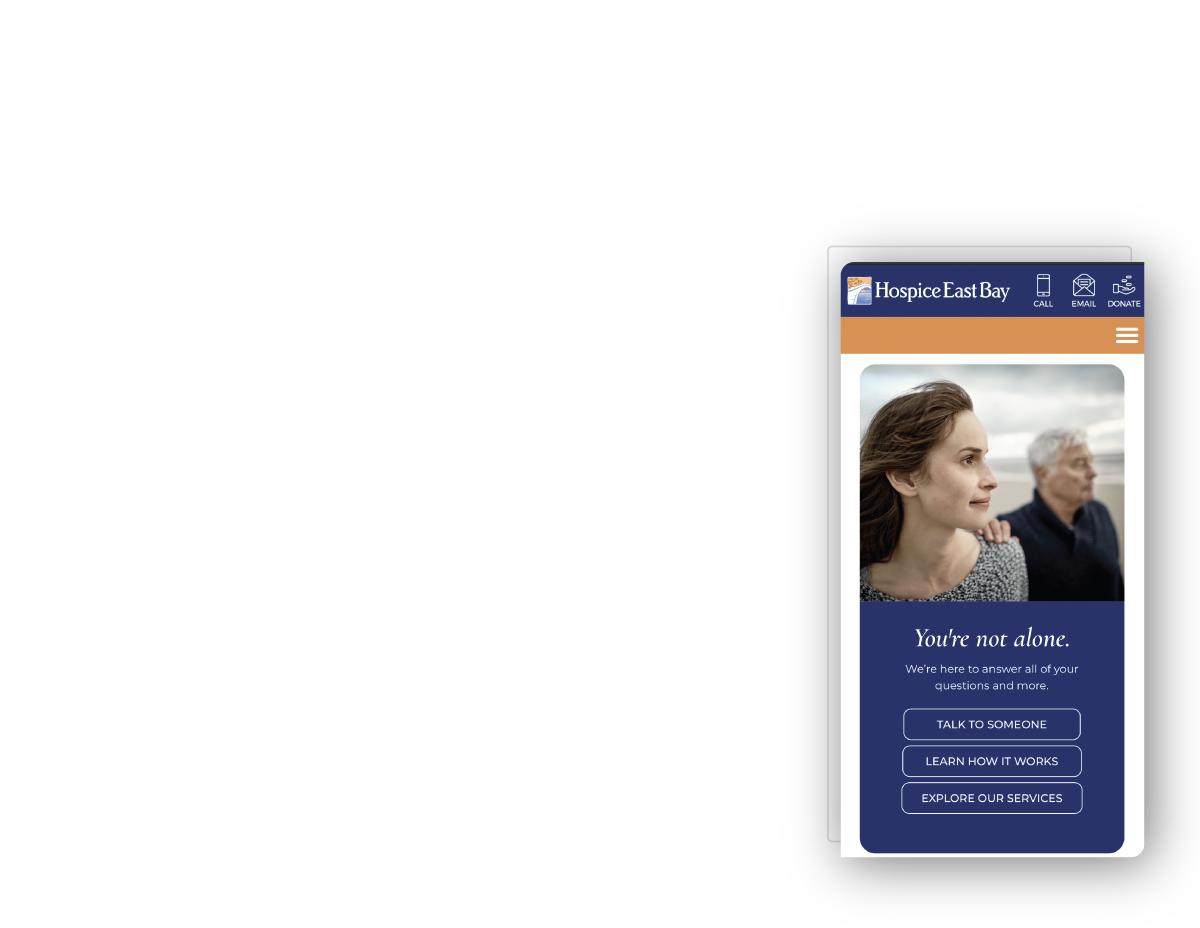 Hospice East Bay provides compassionate end-of-life care to terminally ill patients, while offering emotional, spiritual, and grief support for the entire family. We worked with the HEB team to create a user experience and website that helps people find the services and assistance they need at a challenging time.