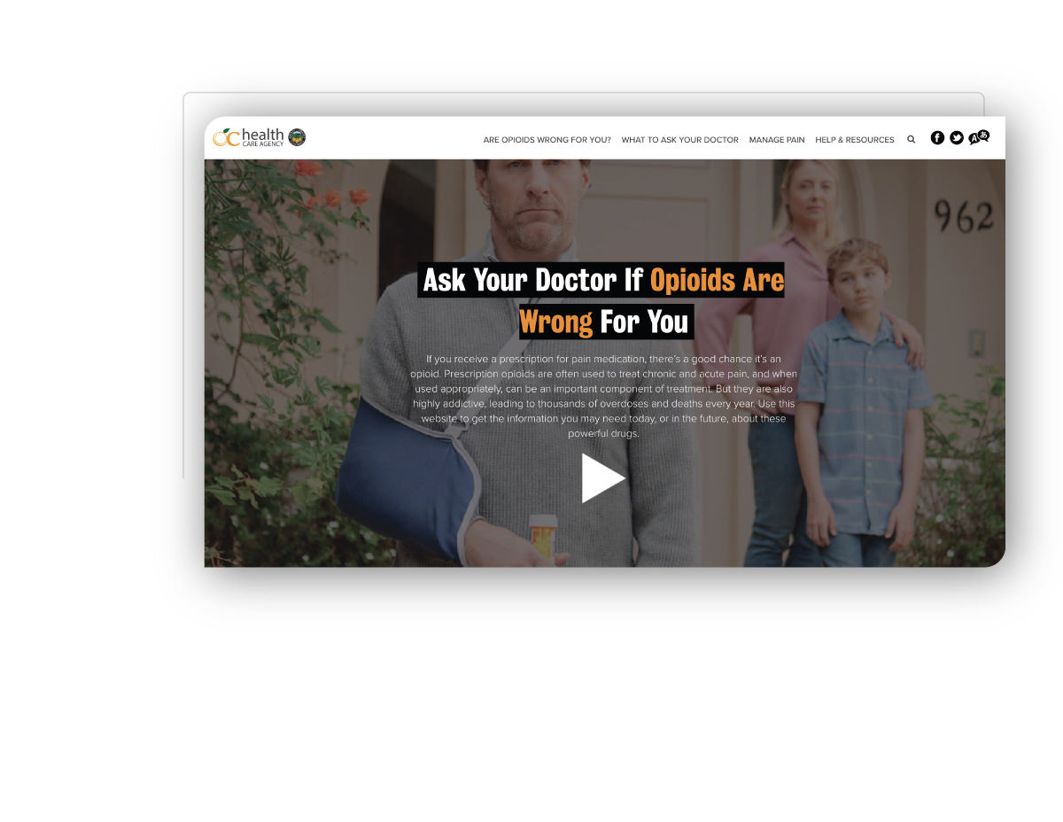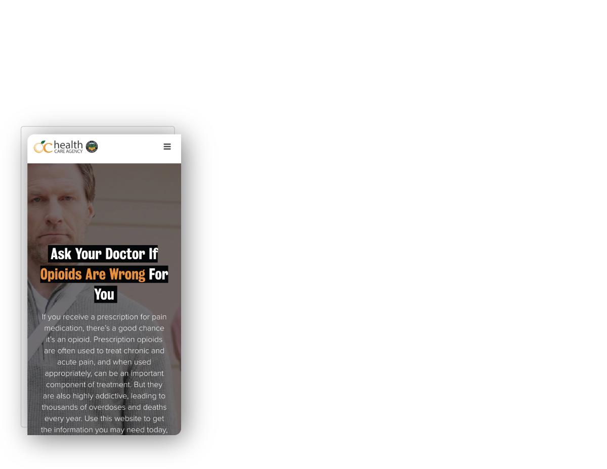 Pharmaceutical commercials tell you to “ask your doctor” if a drug is “right for you.”, but when it comes to opioids, it’s important to ask instead why they may be wrong for you. Because it’s easy for anyone to become dependent on opioids, OCHCA created the “Wrong For You” campaign to help adults in Orange County make better decisions around opioid use and avoid opioid misuse. Bonfire was brought in to design and build a custom website containing key information and resources for adults to have everything they need to make the right decision for their health.